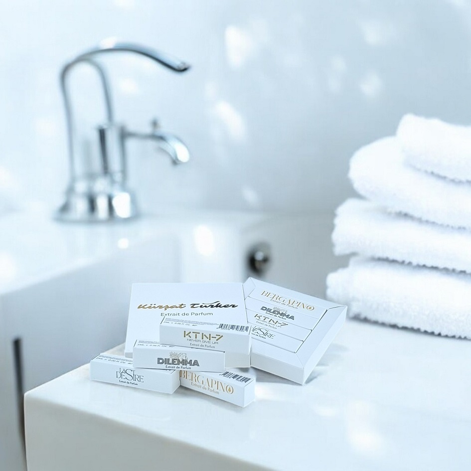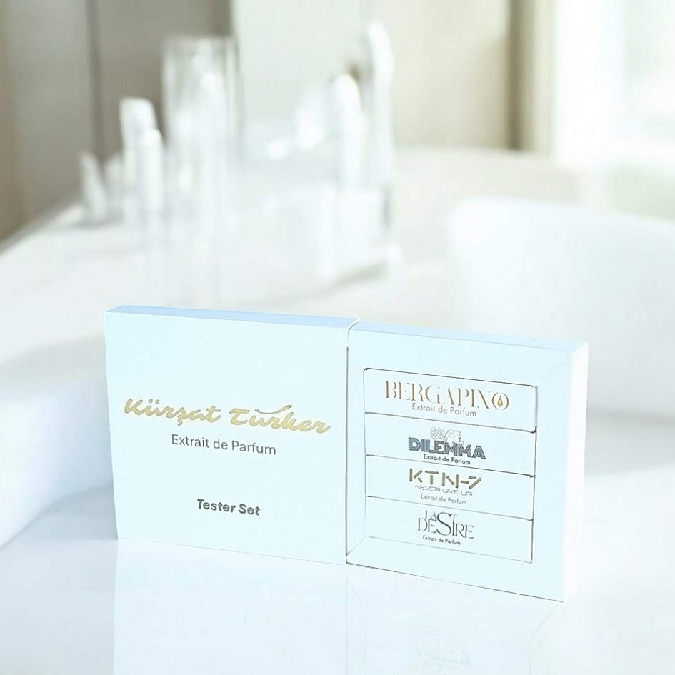 Kürşat Türker markasıyla dört farklı koku profilindeki parfümleri kolayca denemeniz ve ürünler hakkında ön değerlendirme yapabilmeniz için sunduğumuz, her biri 2 ml parfümden oluşan 4’lü mini tester seti artık sizlerle.